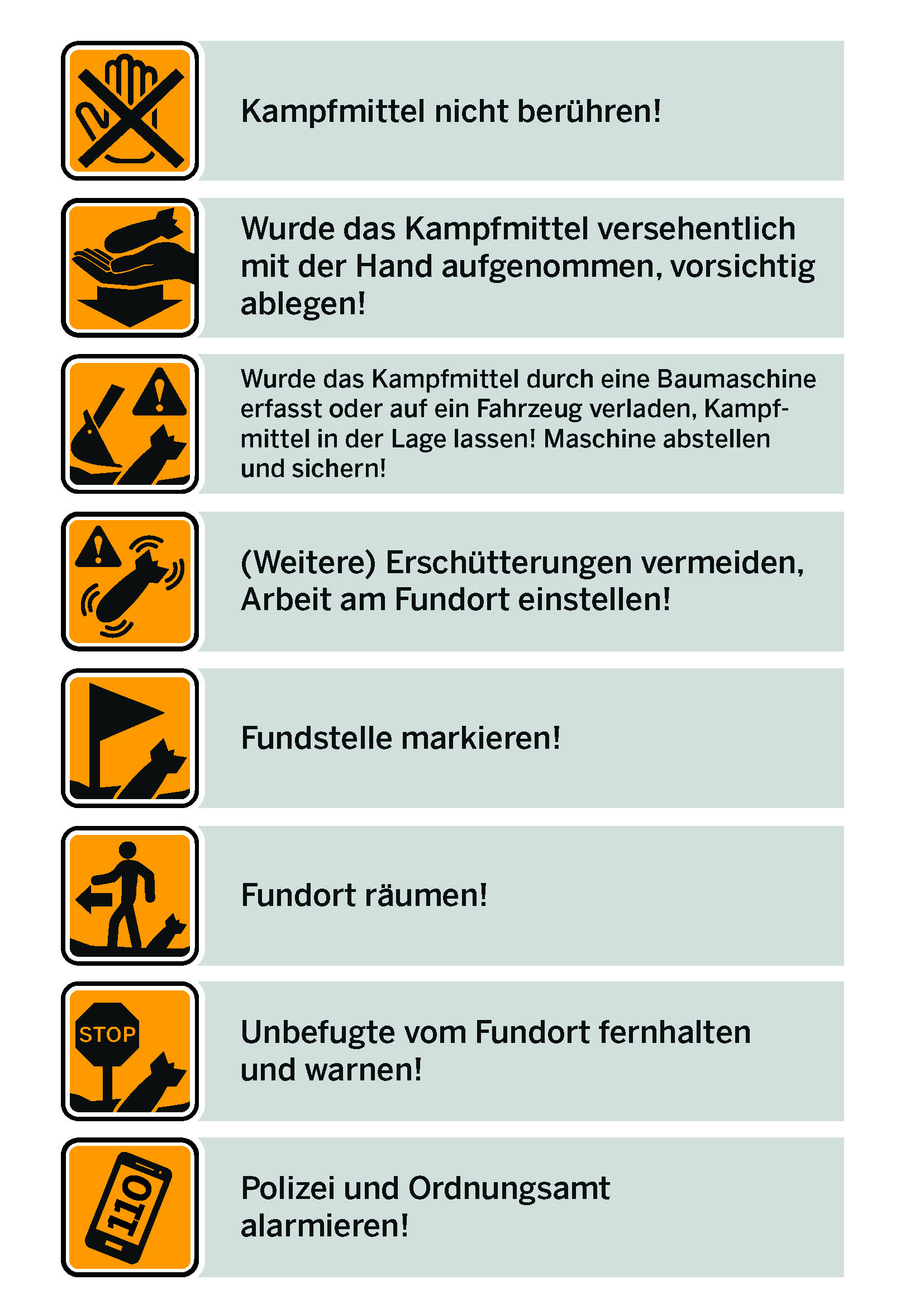 In den Gefahrenbereichen werden Lautsprecherfahrzeuge eingesetzt und Handzettel mit Hinweisen verteilt. Sie müssen sich darauf einstellen, Ihre Wohnung oder Ihren Arbeitsplatz in Kürze zu verlassen. Mitarbeiter des Ordnungsamtes, der Polizei oder der Feuerwehr werden Sie zu gegebener Zeit zum Verlassen Ihrer Wohnung oder Ihres Arbeitsplatzes auffordern. Hierbei handelt es sich nicht um eine Bitte, sondern um eine Anordnung, der Sie zu Ihrer eigenen Sicherheit Folge leisten müssen.
